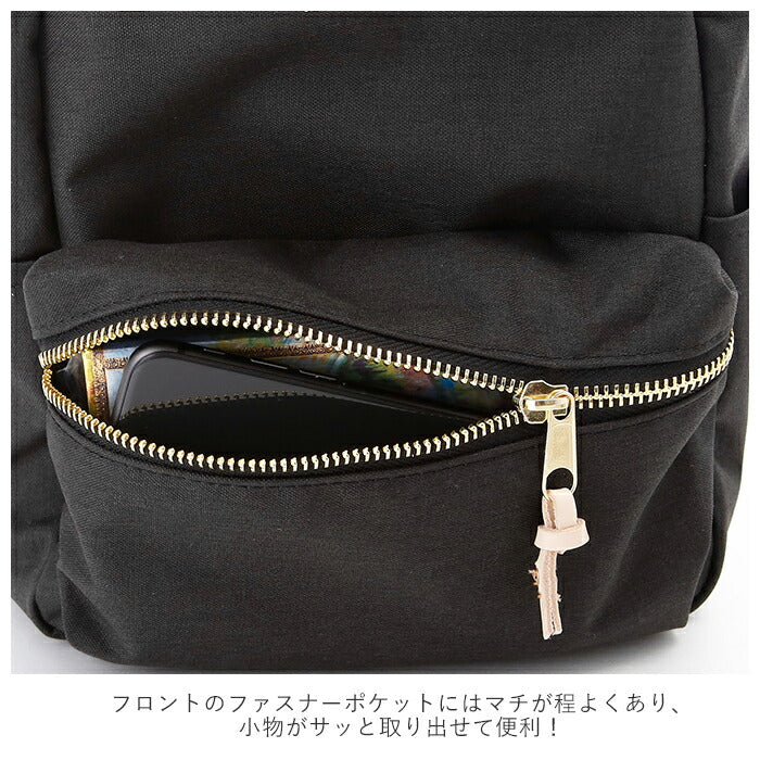 ・フロントのファスナーポケットにはマチが程よくあり、スマートフォンや文庫本など、小物がサッと取り出せて便利!