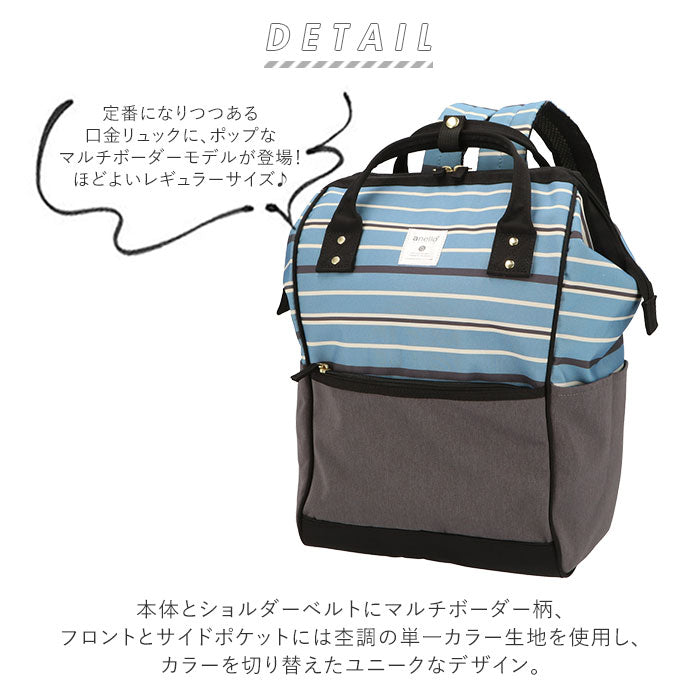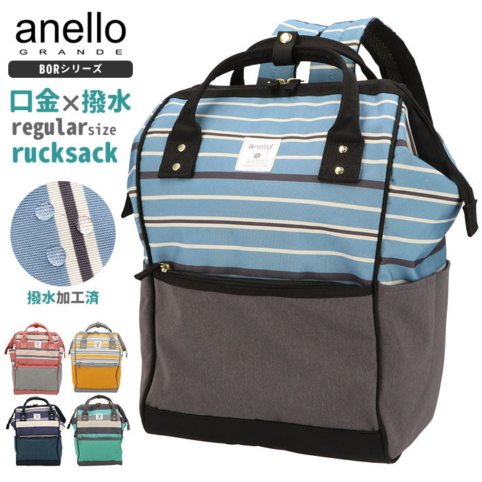 アネロ リュック レディース 通販 大容量 おしゃれ 通勤 A4 通学 ママ ブランド 撥水 はっ水 軽い 軽量 大人 かわいい 旅行 遠足 中学生 高校生 カジュアル がまぐち がま口 ママリュック マザーズリュック レギュラーサイズ Mサイズ anello GRANDE BOR ボーダー