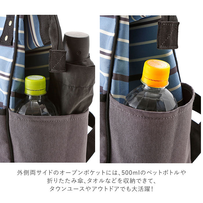 ・外側両サイドのオープンポケットには、500mlのペットボトルや折りたたみ傘、タオルなどを収納できて、タウンユースやアウトドアでも大活躍!