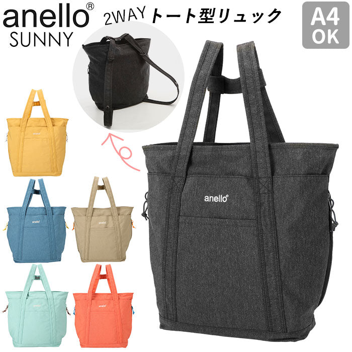 アネロ リュック 撥水 通販 ブランド anello 大容量 大きめ 通勤 大学生 通学 高校生 中学生 かわいい シンプル 無地 メンズ バックパック 2way 手さげ トートバッグ ブラック トートー サニー
