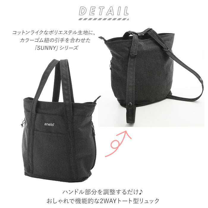 ・コットンライクなポリエステル生地に、カラーゴム紐の引手を合わせた「SUNNY」シリーズ。おしゃれで機能的な2WAYトート型リュック