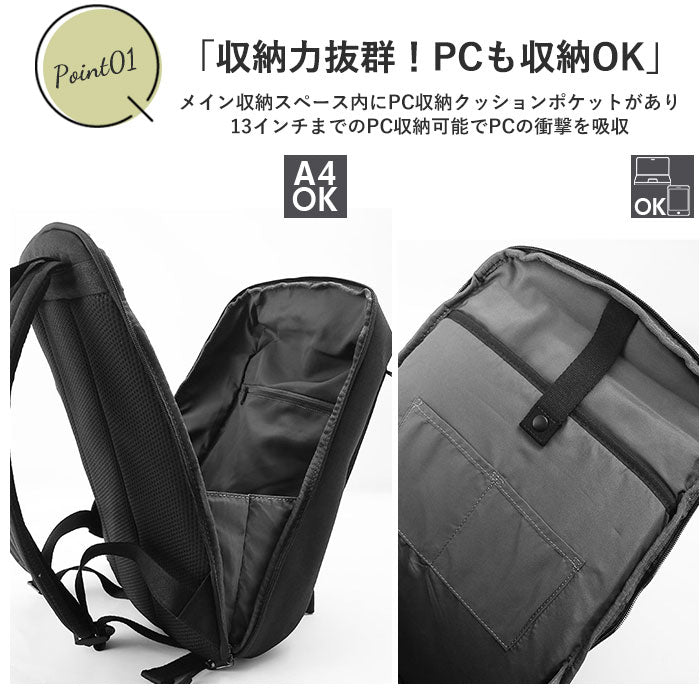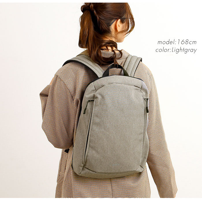 ・はっ水加工が施された、軽量の杢調ポリエステル生地に、背面にSBR(ゴム)加工を施した「SUBSIST」(サブシスト)シリーズのスリムリュック。