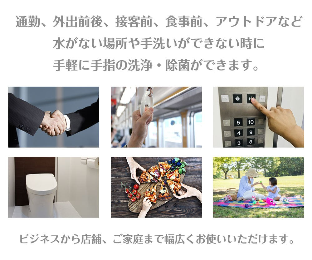 ・水もタオルも使わず、いつでもどこでも使用できる。
