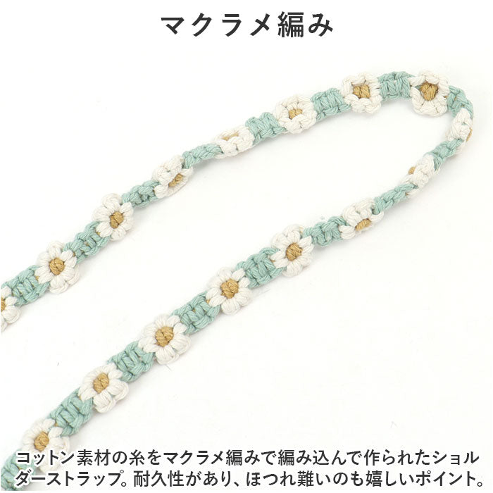 ・コットン素材の糸をマクラメ編みで編み込んで作られたショルダーストラップ。