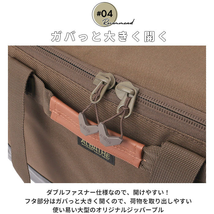 ・ダブルファスナー仕様なので、開けやすい!フタ部分はガバっと大きく開くので、荷物を取り出しやすい!