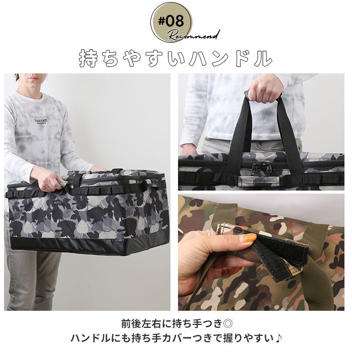 ・ソフトタイプの形状でたっぷり収納◎大きめの68Lサイズでキャンプギアなどを整理して収納。必要なものをどんどん収納出来る安心のサイズ感!