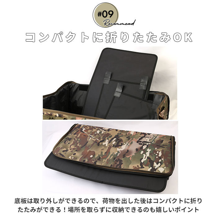 ・底板は取り外しができるので、荷物を出した後はコンパクトに折りたたみができる!場所を取らずに収納できるのも嬉しいポイント。