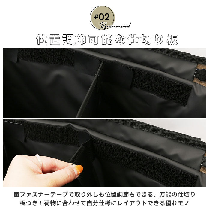 ・面ファスナーテープで取り外しも位置調節もできる、万能の仕切り板つき!荷物に合わせて自分仕様にレイアウトできる優れモノ!