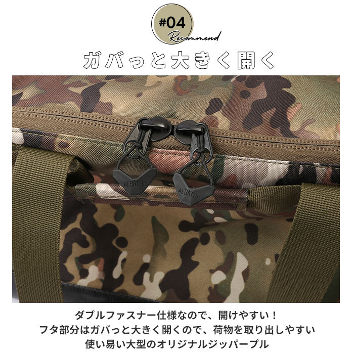 ・ダブルファスナー仕様なので、開けやすい!フタ部分はガバっと大きく開くので、中身がひと目でわかり荷物を取り出しやすい!