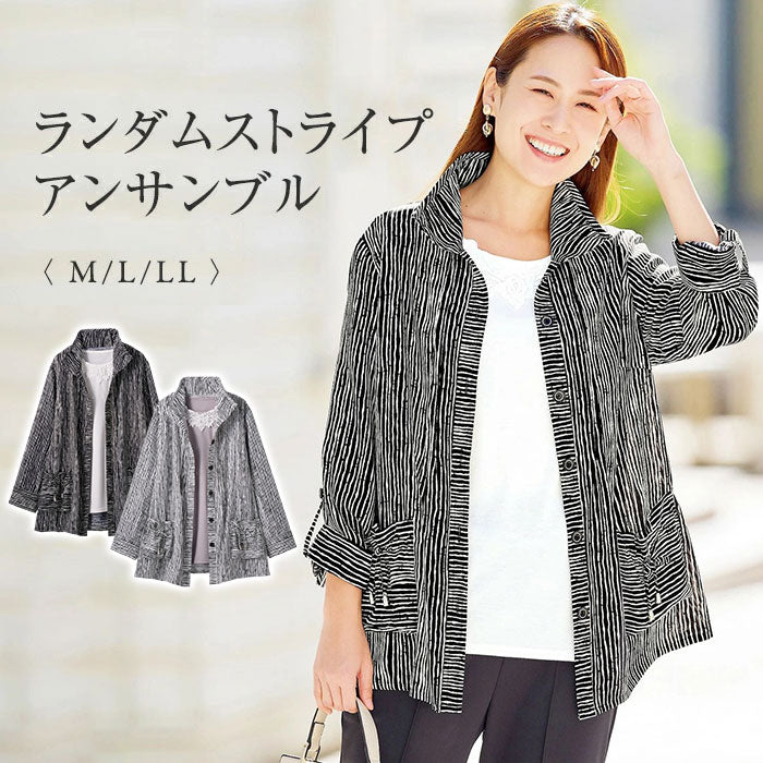 アンサンブル レディース 通販 ストライプアンサンブル トップス カーディガン チュニック レディースアンサンブル シンプル カジュアル おしゃれ 動きやすい 快適 女性 大人