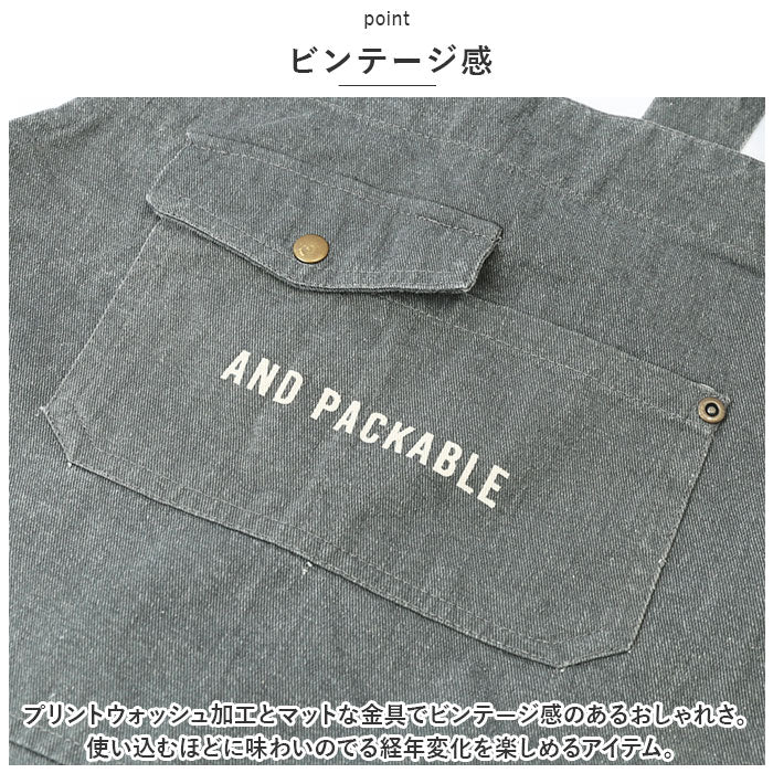 ・ビンテージ感が魅力。オーバーオール風デザインが可愛い♪「AND PACKABLE エプロン」が登場。