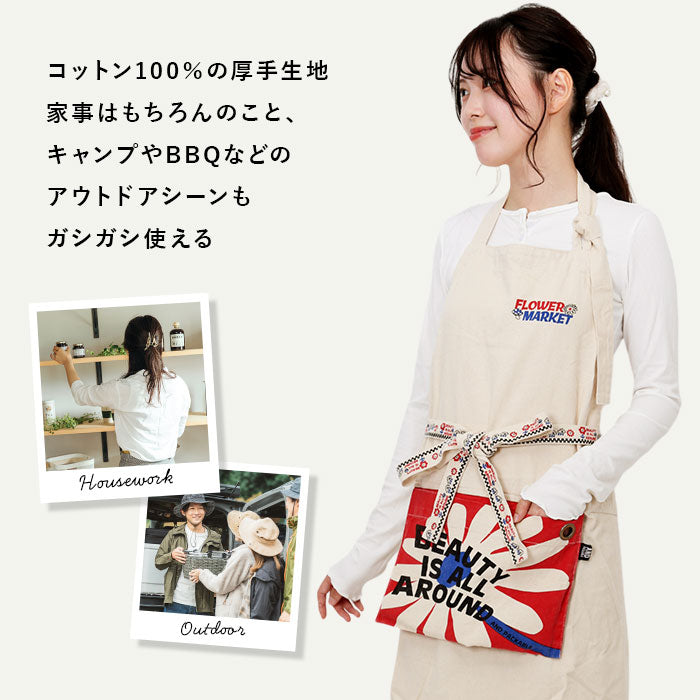 ・肌触りの良いコットン100%生地を使用。キャンプやBBQ、料理教室やお掃除などにも大活躍!