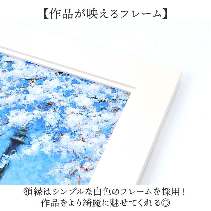 ・額縁はシンプルな白色のフレームを採用!作品をより綺麗に魅せてくれる◎