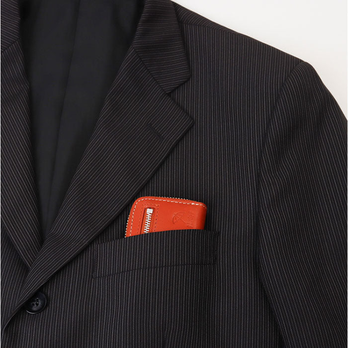 ・フロントには500円玉など大きな硬貨も入るファスナーポケット。折りマチで小銭が多く入る