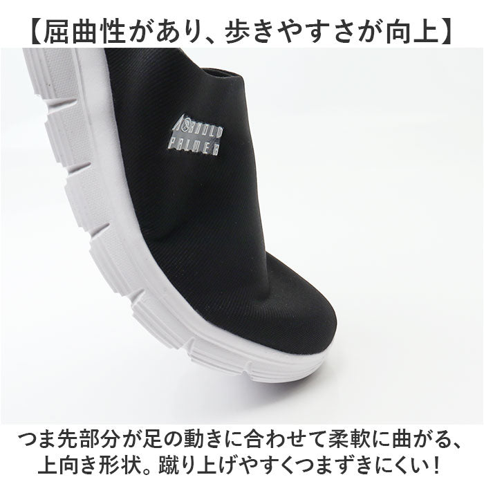 ・つま先部分が足の動きに合わせて柔軟に曲がる、上向き形状。蹴り上げやすくつまずきにくい!