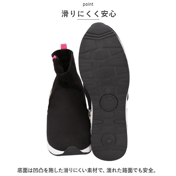 ・ハイカットスニーカーのようなスポーティーなデザインで、晴れの日に履いても違和感なし◎天気が不安定な日や、旅行にも!