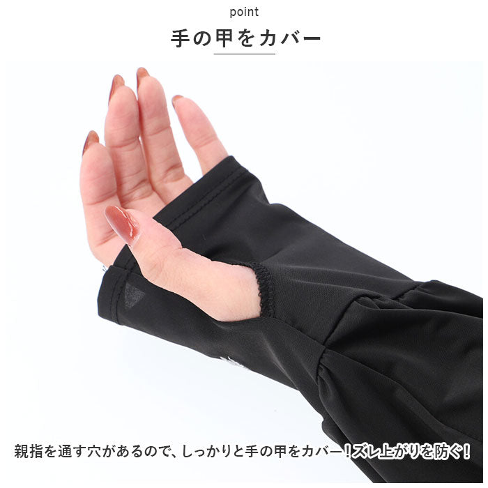・親指を通す穴があるので、しっかりと手の甲をカバー!ズレ上がりを防ぐ!