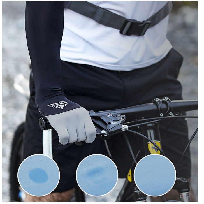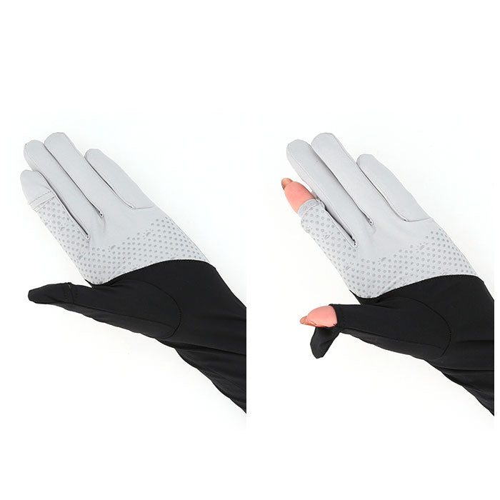 ・汗ばむ季節に、ひんやり心地よいさらりとした着用感♪体感温度が下がる効果も♪指先まですっぽりカバーする手袋タイプなので、指先の日焼け対策にも◎