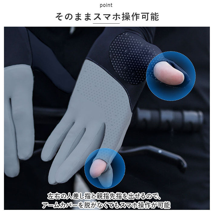 ・左右の人差し指と親指先指を出せるので、アームカバーを脱がなくてもスマホ操作が可能。