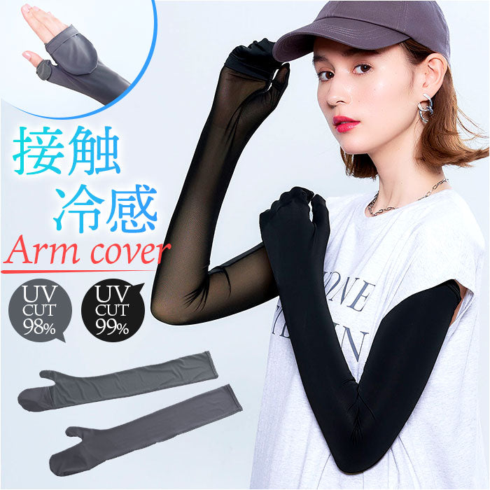アームカバー 冷感 通販 指ぬきグローブ ミトンタイプ 接触冷感 極薄素材 スマホ操作OK 内側メッシュ生地 メッシュ 涼しい 快適 蒸れにくい 洗える 水陸両用 65CM ロング丈 持ち運び