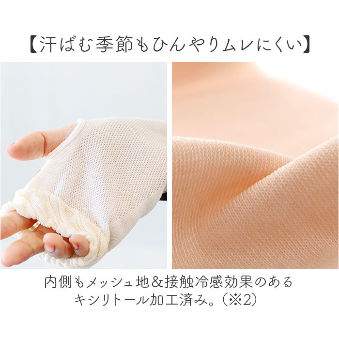 ・内側もメッシュ地&接触冷感効果のあるキシリトール加工済み。