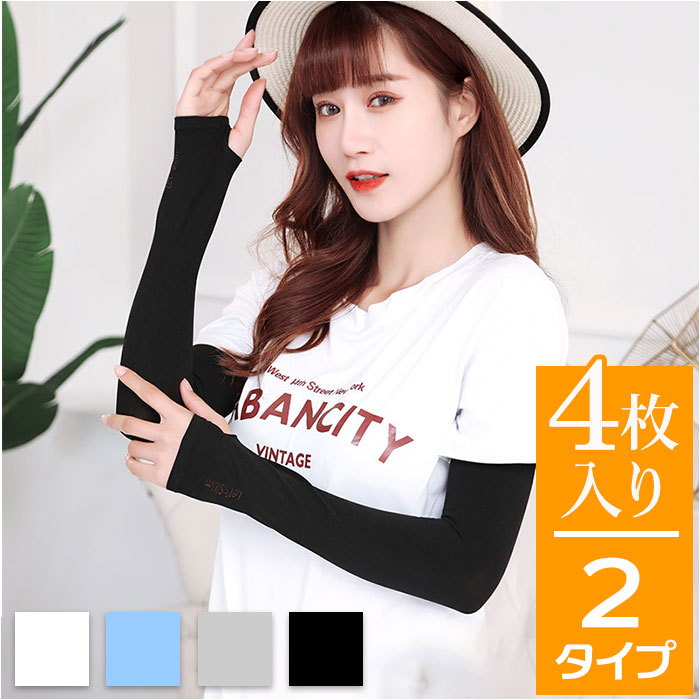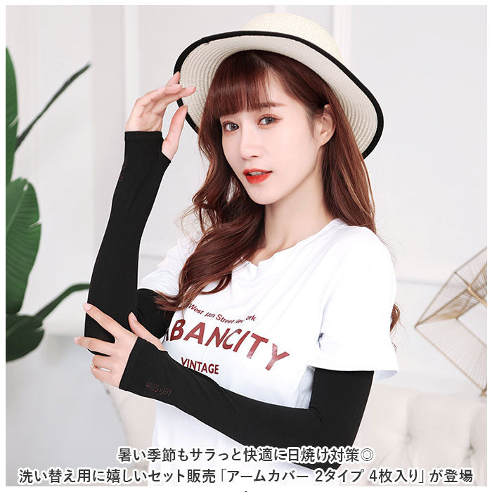 アームカバー 薄い 伸縮性 通販 2タイプ 4枚入り レディース 腕カバー 手袋 ロング 袖 スリーブ カバー 日焼け防止 紫外線対策 日よけ 日除け 夏 夏用 かわいい おしゃれ