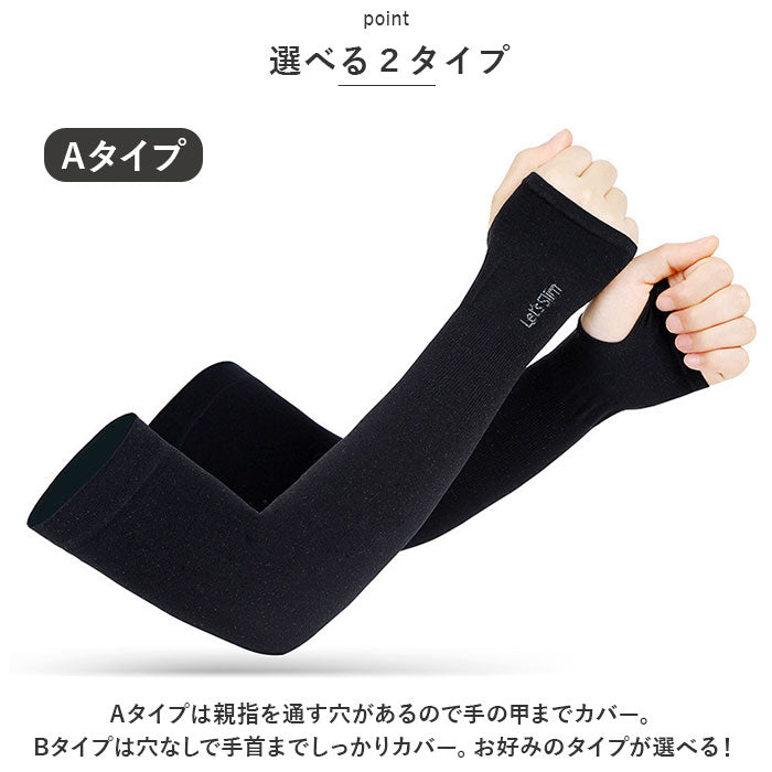 ・Aタイプは親指を通す穴があるので手の甲までカバー。Bタイプは穴なしで手首までしっかりカバー。お好みのタイプが選べる!