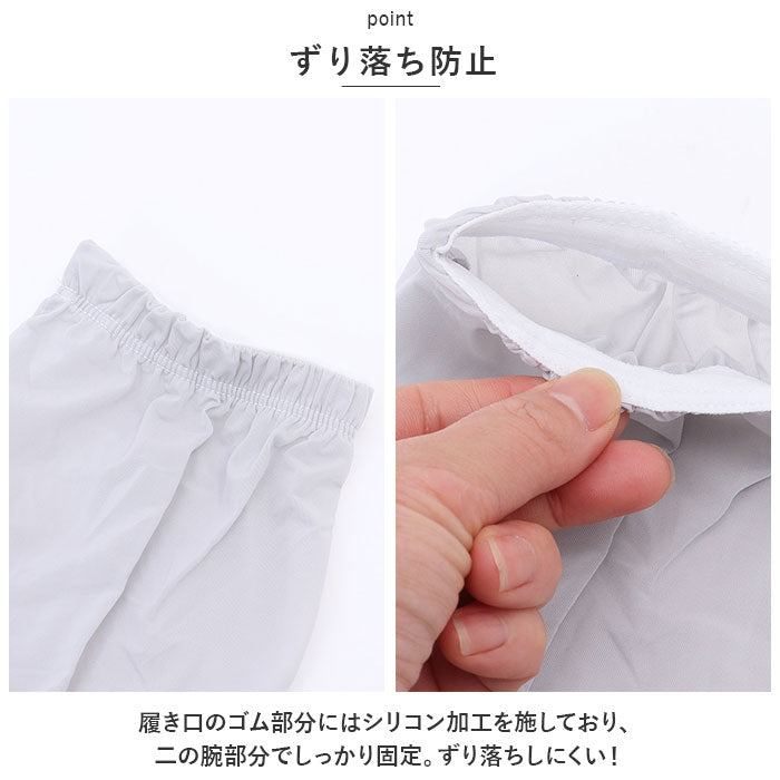 ・履き口のゴム部分にはシリコン加工を施しており、二の腕部分でしっかり固定。ずり落ちしにくい!