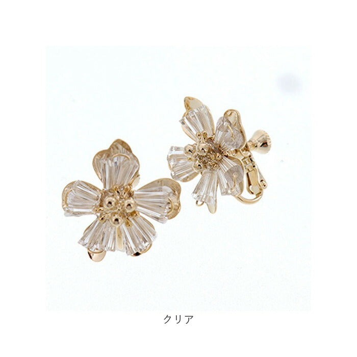 イヤリング サン宝石 通販 耳飾り ネジバネ式 アクセサリー サンホ ER-460 ビーズのお花イヤリング ビーズ お花 フラワー キラキラ おしゃれ かわいい きれいめ シンプル 大人可愛い