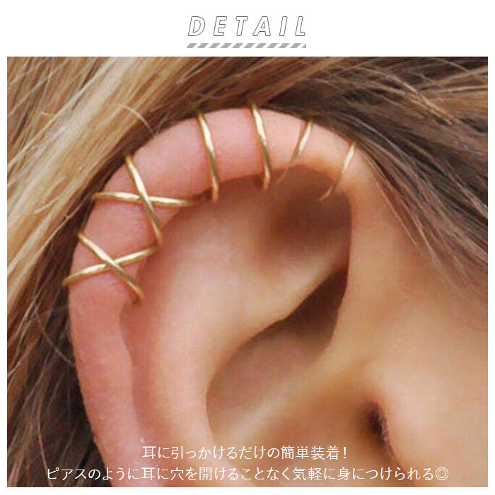 ・耳に引っかけるだけの簡単装着!ピアスのように耳に穴を開けることなく、イヤリングのように耳たぶを挟む際の締め付け感もないので、気軽に身につけられる◎