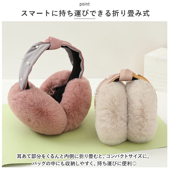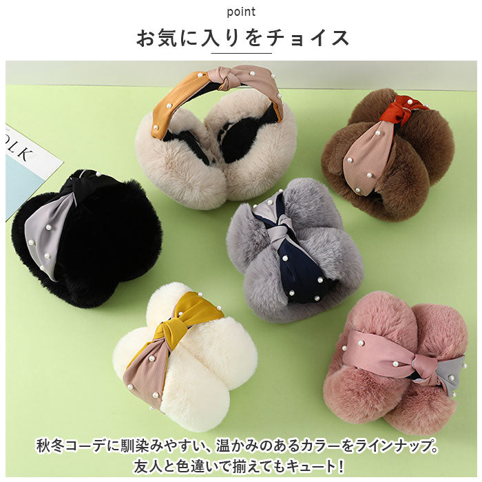 ・耳あて部分を繋ぐバンドには、イミテーションパールなどの装飾をプラス。アクセサリー感覚で使えて、キレイめコーデにも素敵にマッチ☆