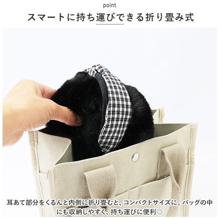 ・耳あて部分をくるんと内側に折り畳むと、コンパクトサイズに。バッグの中にも収納しやすく、持ち運びに便利◎