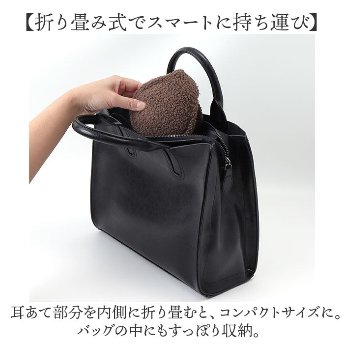 ・耳あて部分を内側に折り畳むと、コンパクトサイズに。バッグの中にもすっぽり収納。