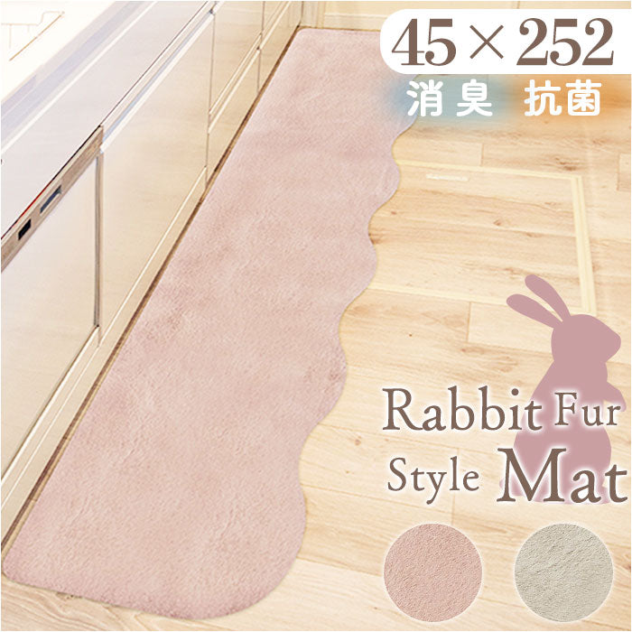 インテリアマット 45x252 通販 マット フロアマット キッチン用マット 滑り止め すべり止め ふわふわ フワフワ さらさら サラサラ 洗える 丸洗い 毛足 長め ラビットファー調 pupumof