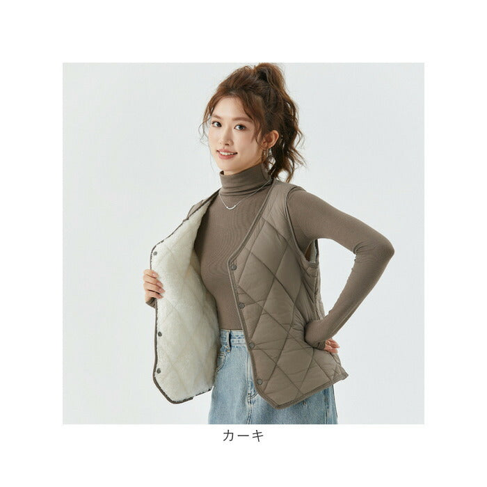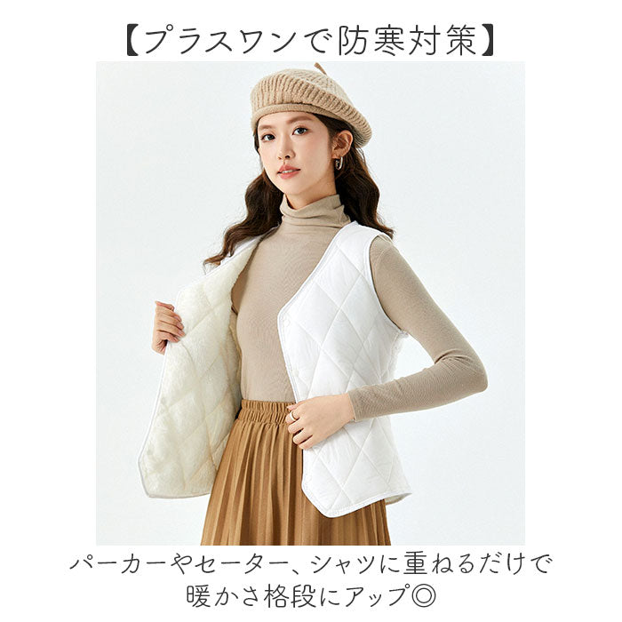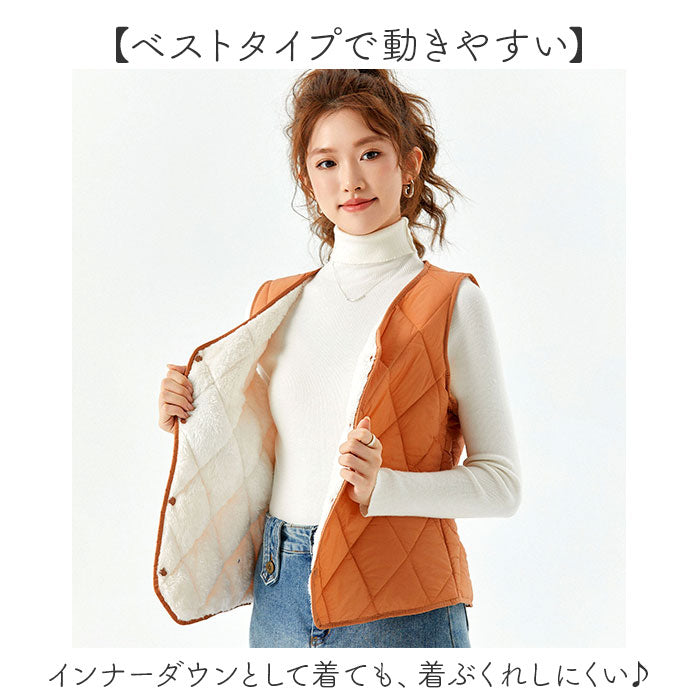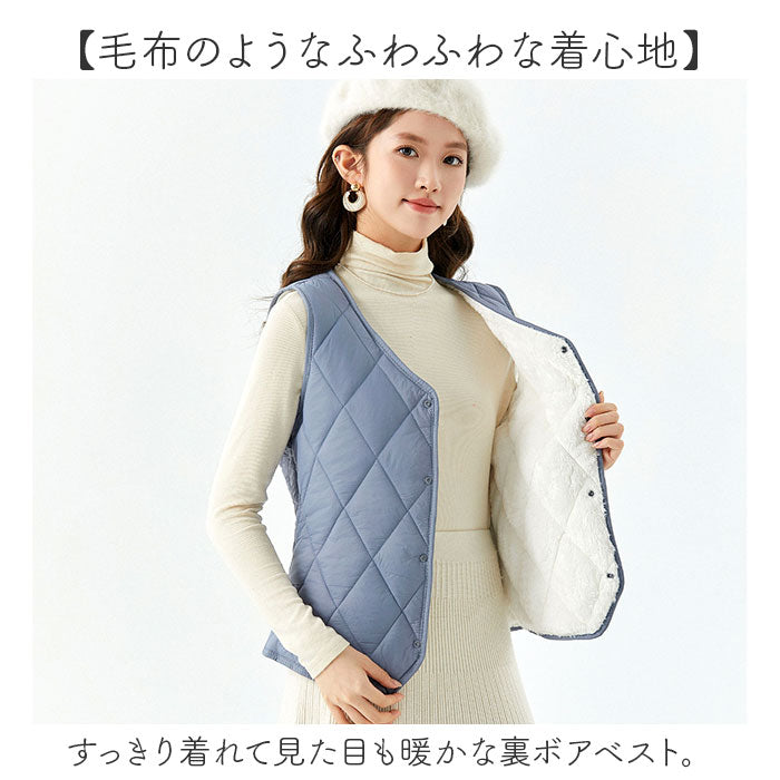 インナーベスト レディース 中綿 裏起毛 通販 ベスト 中綿ベスト 防寒ベスト インナーダウン ボアベスト 暖かい 前開き 軽量 vネック チョッキ 防寒グッズ ジレ おしゃれ 秋冬