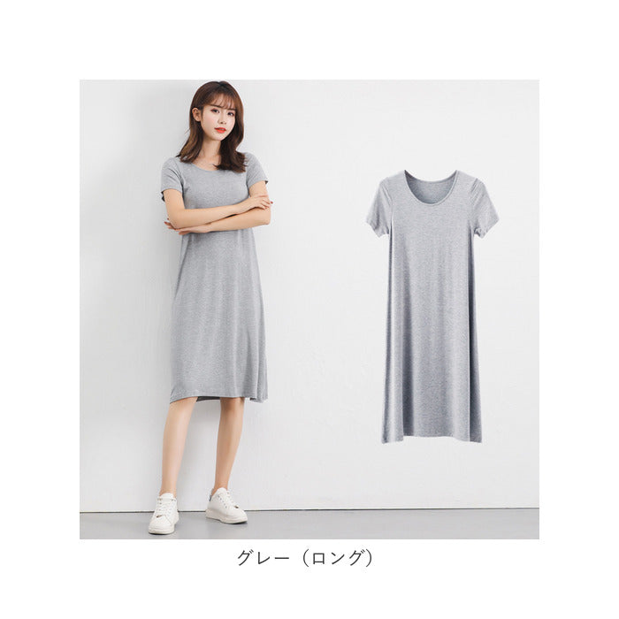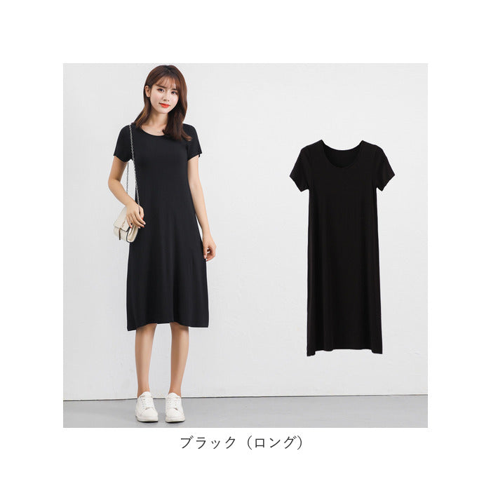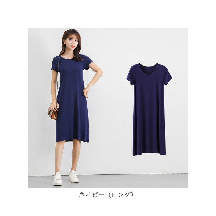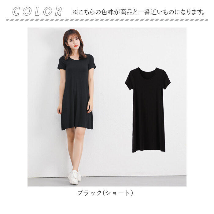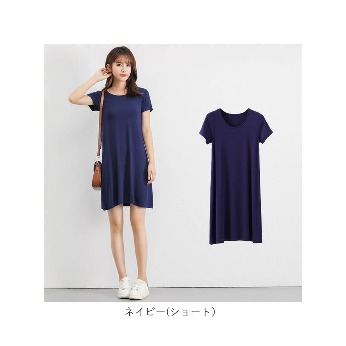 インナーワンピース ワンピース ルームウェア tシャツワンピース 通販 半袖 カットソー Tシャツ ロンT Tシャツワンピ 肌着 レディース Aライン ラウンドネック 大きいサイズ ゆったり