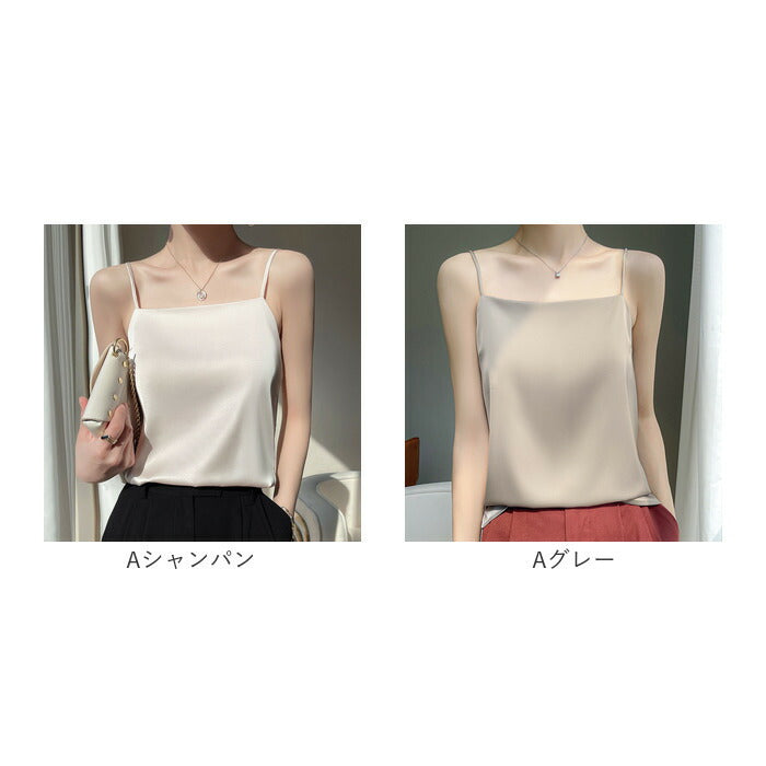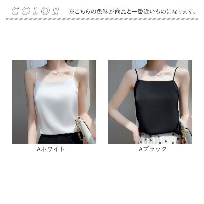インナー キャミソール サテン 通販 下着 肌着 トップス ノースリーブ おしゃれ きれいめ レディース アンダーウェア ゆったり 光沢感 サラサラ 保温 吸湿 速乾 シンプル 無地 通勤 通学