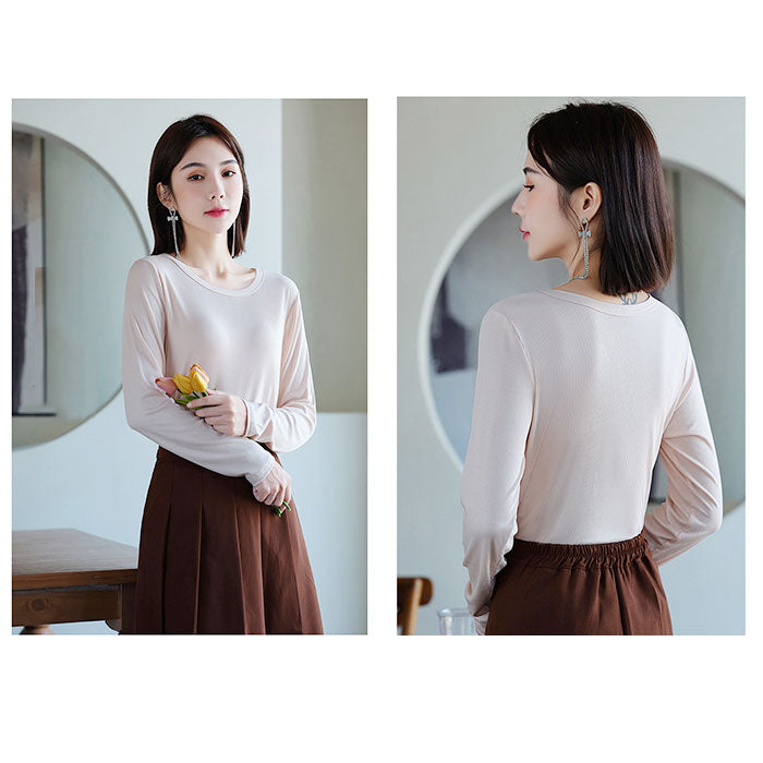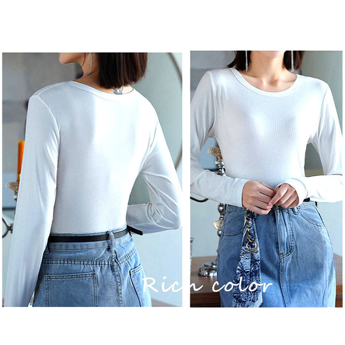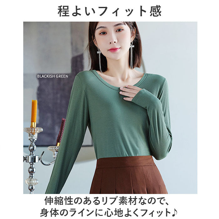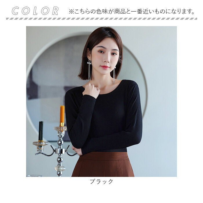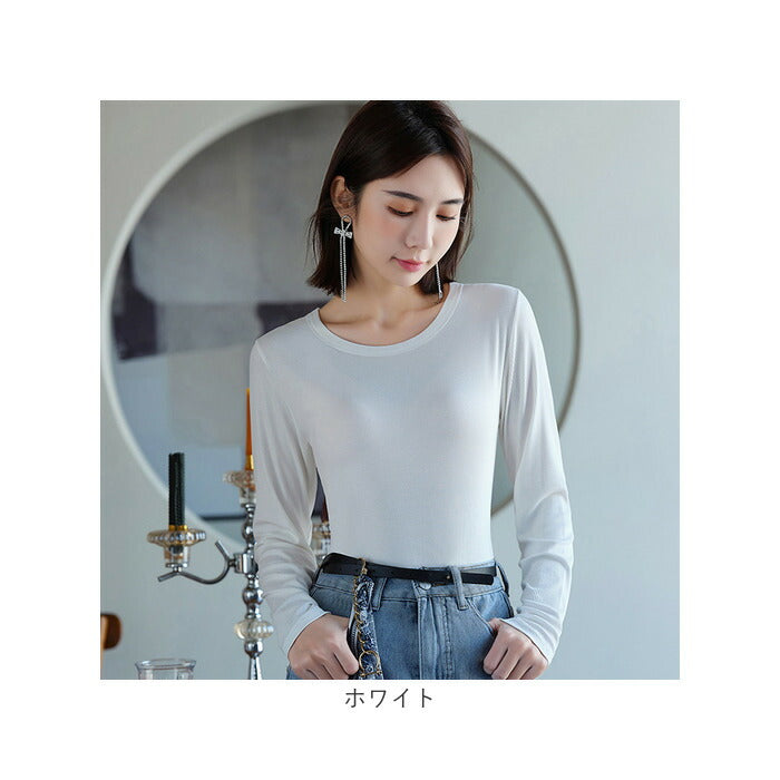 インナー レディース 長袖 通販 ロンT ロングTシャツ シャツ Tシャツ 肌着 下着 トップス カットソー クルーネック 吸湿性 通気性 重ね着 無地 シンプル 通勤 通学 カジュアル 秋冬