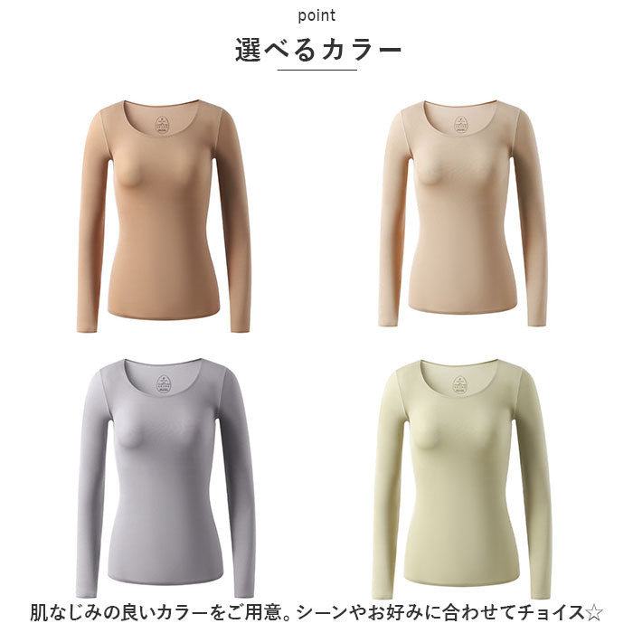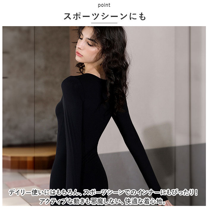 インナー レディース 長袖 通販 下着 アンダーウェアセット アンダーウエア インナー 肌着 あったか 丸首 長そで 防寒 薄手 快適 あたたか 暖かい スポーツインナー