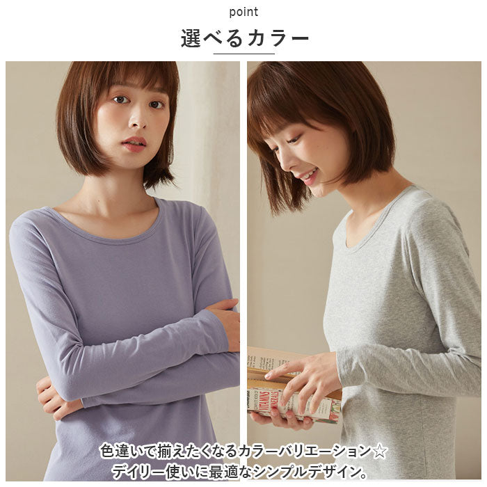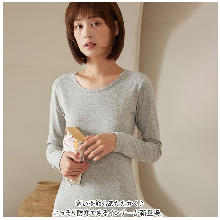 インナー レディース 長袖 通販 下着 アンダーウェア アンダーウエア ラウンドネック 肌着 あったか 丸首 長そで 防寒 トップス あたたか 暖かい 長袖シャツ 長袖インナーTシャツ 綿