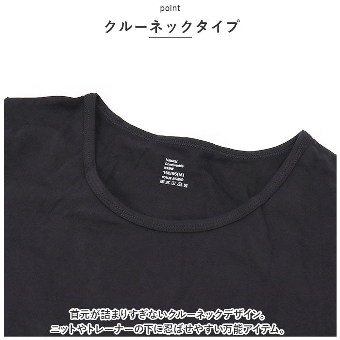 ・首元が詰まりすぎないクルーネックデザイン。ニットやトレーナーの下に忍ばせやすい万能アイテム。