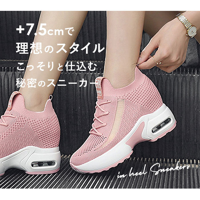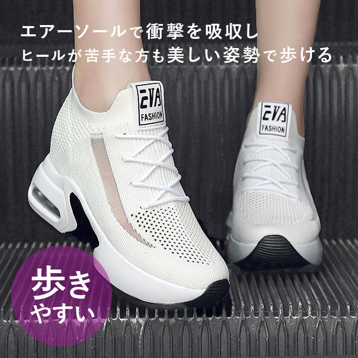 インヒールスニーカー レディース 通販 厚底 スニーカー 厚底靴 厚底シューズ 8cm 8センチ おしゃれ シンプル 軽量 軽い メッシュ 歩きやすい 履きやすい 学生 通学 大人 かわいい 可愛い