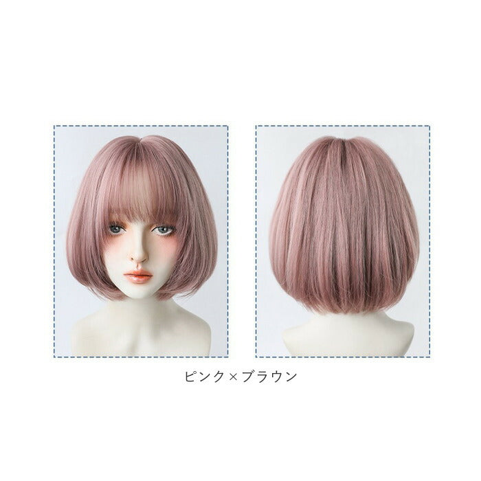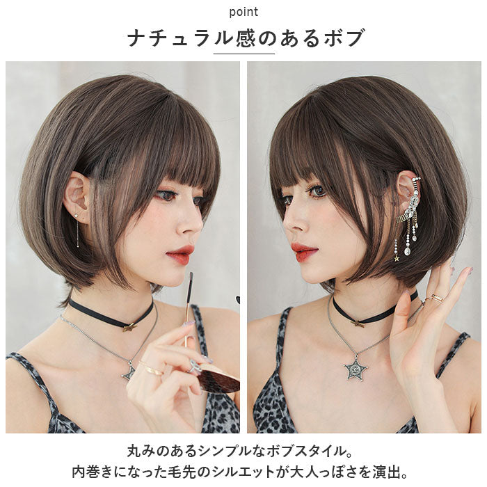 ウィッグ ボブ 通販 ショートボブ ショート かつら フルウィッグ フルウイッグ 内巻き ワンカール カール 自然 グラデーション ブラウン ショートストレート 全頭かつら 女性 イメチェン