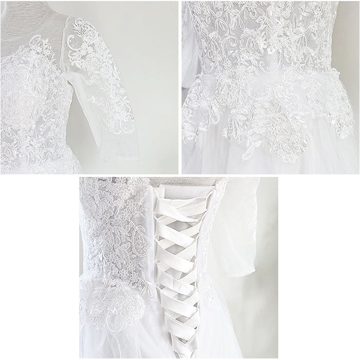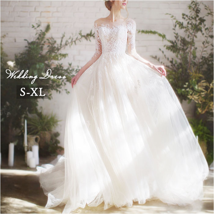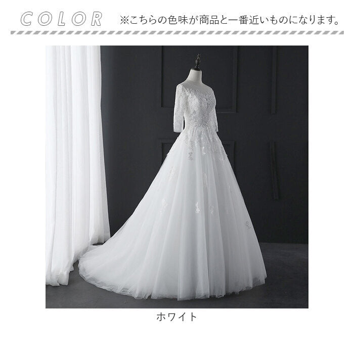ウェディングドレス 袖あり Aライン 通販 ウエディングドレス ブライダルドレス トレーン ドレス レディース パーティドレス 白 ホワイト ロングドレス 七分袖 お色直し 花嫁 結婚式