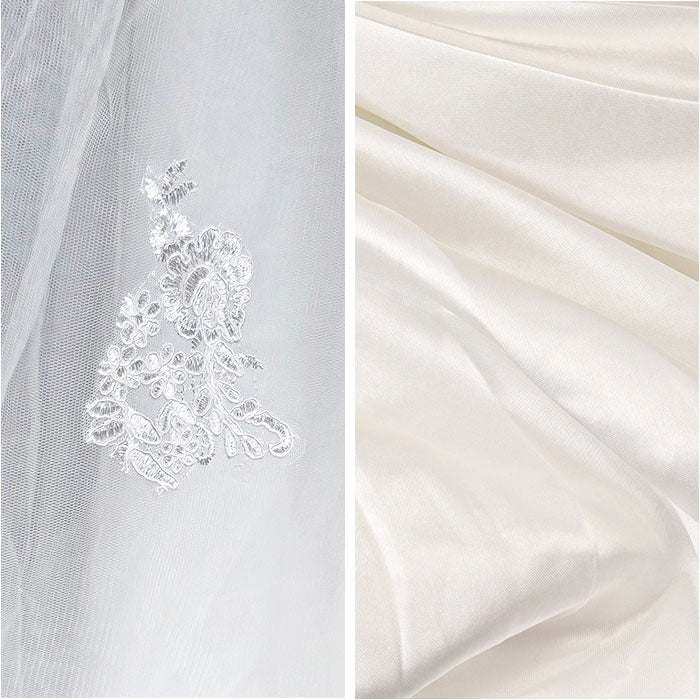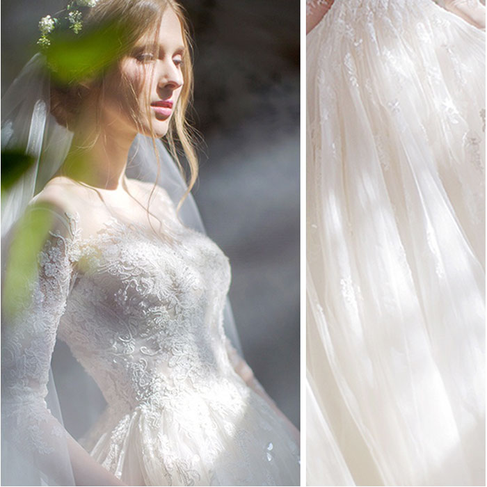 ・チュールレースの美しいディテールが魅力。透け感もほどよく、大人の可憐さを演出。