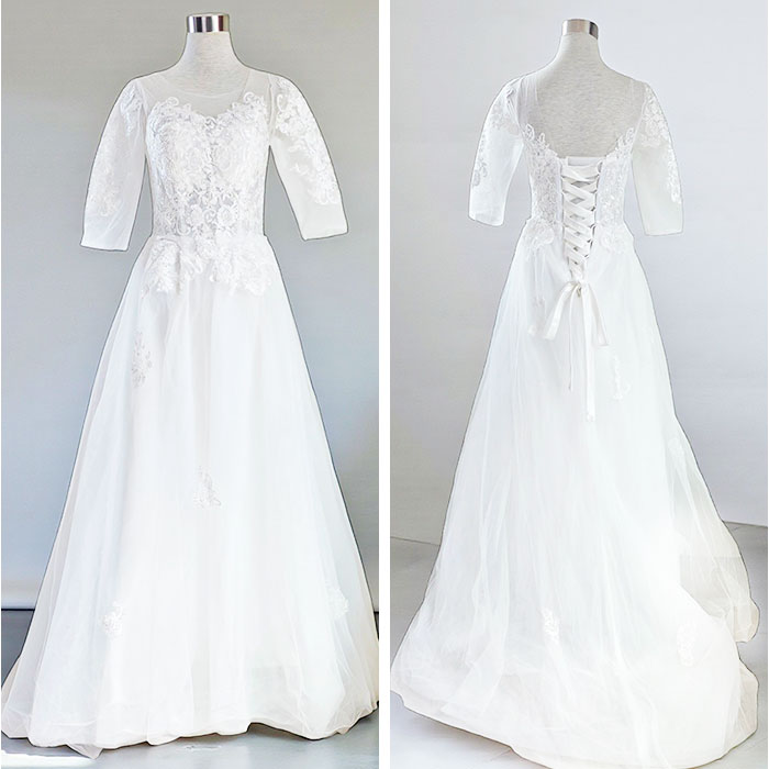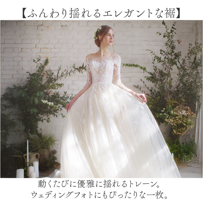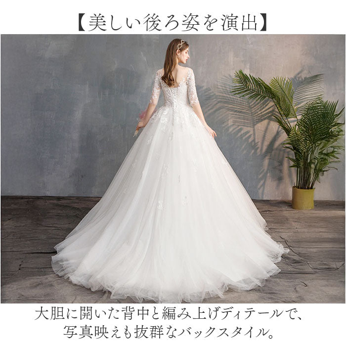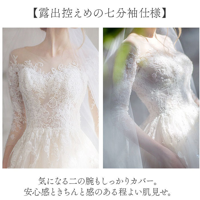 ウェディングドレス トレーン 七分袖