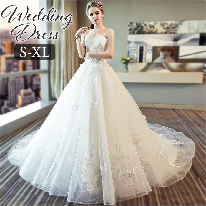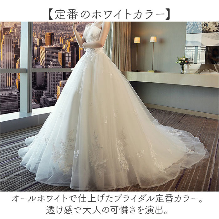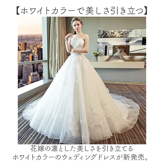 ウェディングドレス Aライン 通販 ウエディングドレス ブライダルドレス トレーン ドレス レディース パーティドレス 白 ホワイト ロングドレス お色直し 花嫁 結婚式 二次会 披露宴
