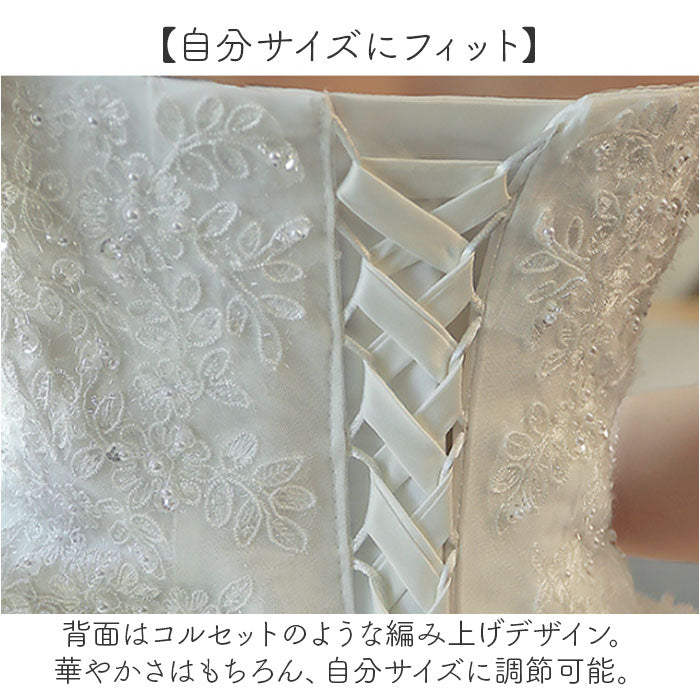 ・背面はコルセットのような編み上げデザイン。華やかさはもちろん、自分サイズに調節可能。
