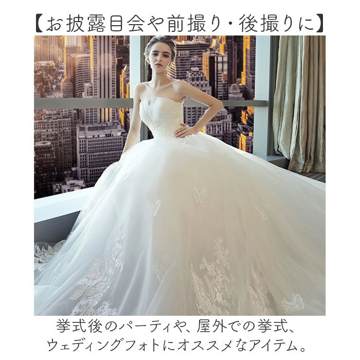 ・挙式後のパーティや、屋外での挙式、ウェディングフォトにオススメなアイテム。