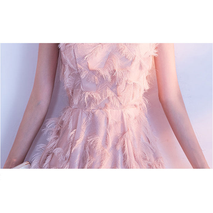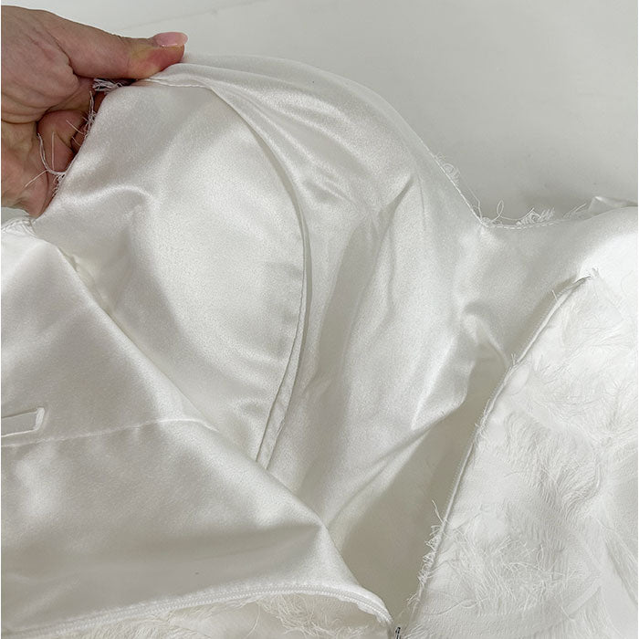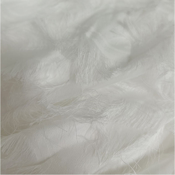 ・華やかなフェザーデザインを大胆に装飾。今っぽさと柔らかな印象で、大人の着こなしを叶える